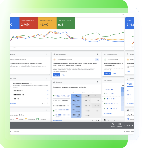 As soon as we take over your Google Ads account you can rest assured that we will give our 100% to optimize your campaigns, and you can watch your sales grow day by day.